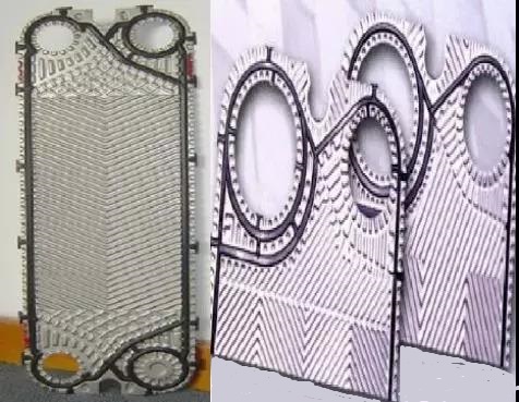 墊片:板的周邊放置墊片,不僅起到密封作用,也使板與板之間形成一定間隙,從而構(gòu)成流體通道墊片能承受的溫度實質(zhì)上就是板換的工作溫度,板換的工作壓力也受墊片制約。常用的墊片材質(zhì)有NBR(丁晴橡膠)、EPDN(乙丙橡膠),其中NBR(丁晴橡膠)使用溫度控制在150℃以下。壓力低于0.6MPa。EPDN(乙丙橡膠)使用溫度不高于160℃,壓力低于2MPa