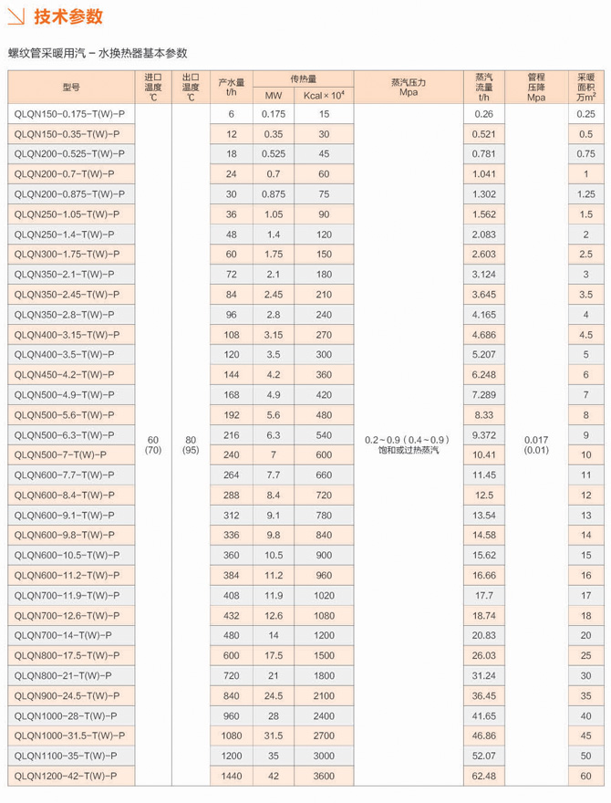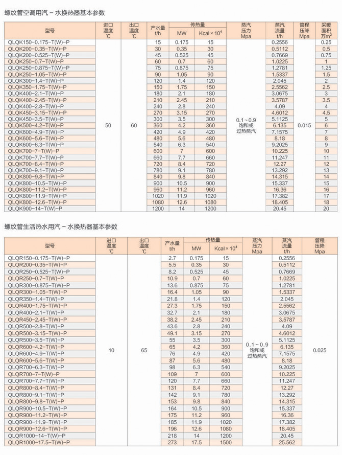 立式螺紋管換熱器選型參數(shù)