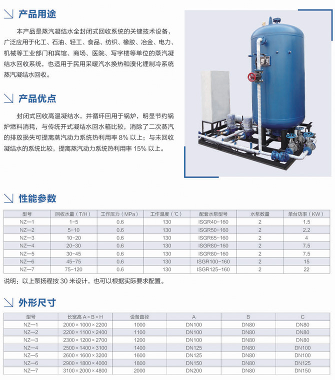 凝結(jié)水回收裝置選型參數(shù)